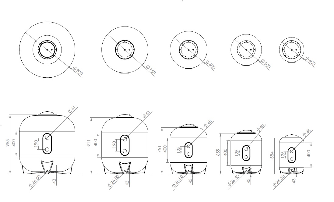 • Abmessungen: ca. 900 x 126 x 115mm (Ø x B x H) (B = inhl. 6-Wege Ventil, H = inkl. Blower)