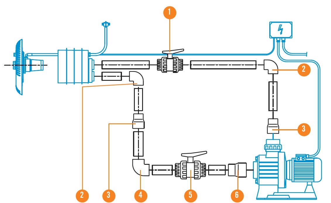 • Im Lieferumfang enthalten sind: Frontplatte mit Düse, Einbauteil für Betonbecken, Pumpe und PN-Schaltkasten