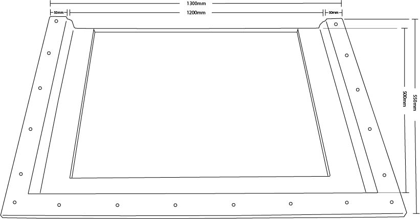 Produktinformationen "Teichscheibe 1200x600 30mm mit VA-Rahmen und Flansche Teichfenster"
